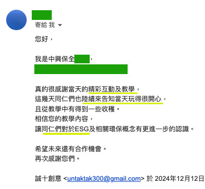 一堂手作能兼具『ESG、Team Building、舒壓療癒』的課程(連總經理都稱讚,同仁的作品很漂亮)