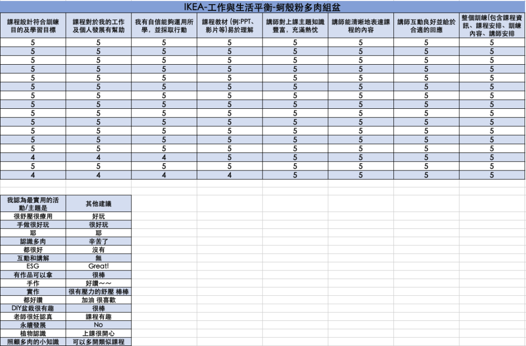 課程中會加入互動教學、透過積分累積、同仁搶答,讓同仁更了解 ESG 基本知識、以及貴公司如何對 ESG 的重視、照顧多肉植物知識、並將公司活動目的,規劃在手作內容,達宣導的目的!